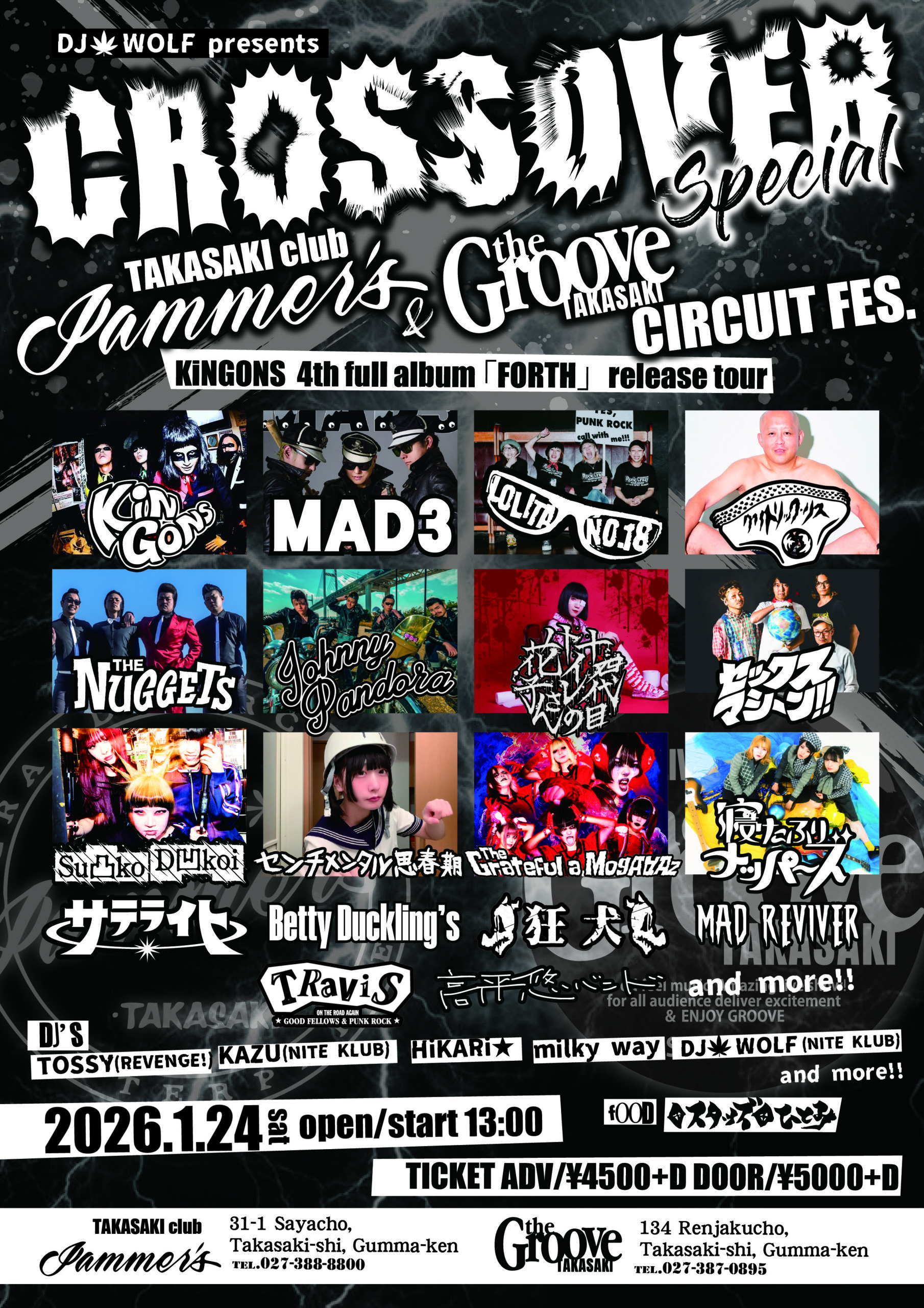 WOLF presents CROSSOVER SPECIALTAKASAKI club JAMMER’S & the Groove TAKASAKI CIRCUIT FES.KiNGONS 4th full album『FOURTH』release tour